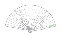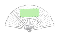 Abanico de varillas de madera natural y tela en poliéster de variados colores. Presentado en caja individual.