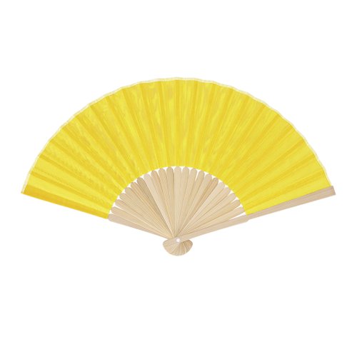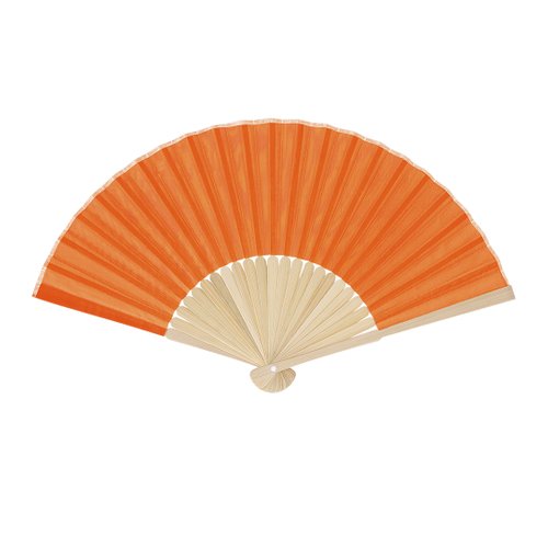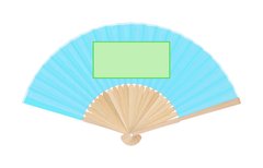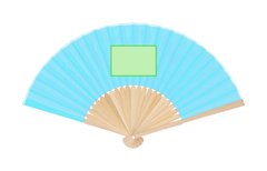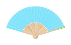 Abanico con varillas fabricadas en resistente bambú. Tela en resistente poliéster 190T.