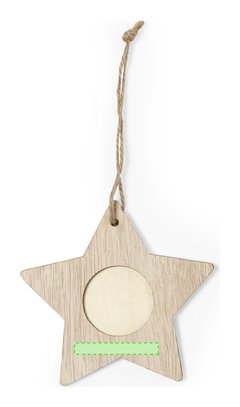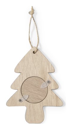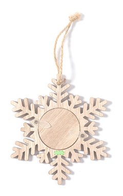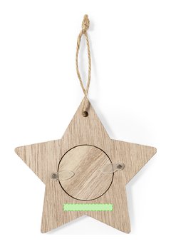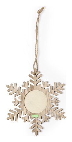 Elegantes adornos navideños con portafotos fabricados en suave madera. Incluye ventana para fotografías en tamaño 4x4 cm y accesorio para colgar en yute natural. Disponible en 3 originales diseños: Copo de Nieve, Árbol de Navidad y Estrella. Presentado en bolsa individual reciclada. Elaborado con elementos vegetales para así fomentar la utilización de materias primas naturales y reducir las emisiones contaminantes.