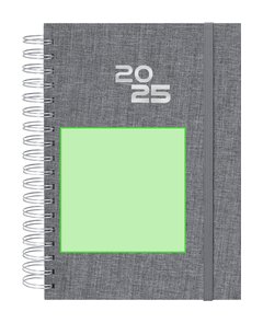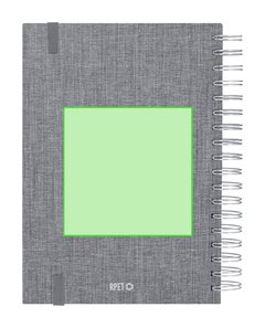 Agenda de anillas tamaño B5 fabricada en suave poliéster RPET. Con tapas rígidas y cierre de goma elástica a juego. Incluye caja kraft de presentación. Cuenta con distintivo RPET.Diseño semana vista, zona de anotaciones y marcapáginas de tela. En 2 idiomas: castellano e inglés. El material RPET se elabora a partir de plástico reciclado, para así fomentar la reutilización de residuos plásticos y ayudar a la sostenibilidad del planeta.