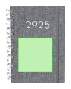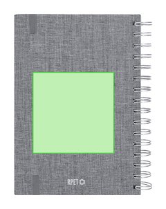 Agenda de anillas tamaño A5 fabricada en suave poliéster RPET. Con tapas rígidas y cierre de goma elástica a juego. Incluye caja kraft de presentación. Cuenta con distintivo RPET.Diseño página día, zona de anotaciones y marcapáginas de tela. En 2 idiomas: castellano e inglés. El material RPET se elabora a partir de plástico reciclado, para así fomentar la reutilización de residuos plásticos y ayudar a la sostenibilidad del planeta.
