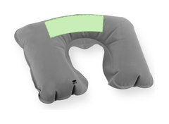 Almohadilla inflable para cuello de suave y confortable ajuste, disponible en variada gama de colores. Fabricada en antelina RPET y presentada en funda individual a juego de RPET. Logotipo RPET en almohadilla y funda. El material RPET se elabora a partir de plástico reciclado, para así fomentar la reutilización de residuos plásticos y ayudar a la sostenibilidad del planeta.