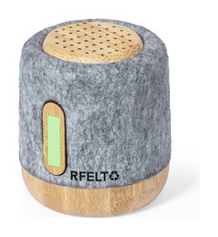 Altavoz con conexión Bluetooth®. Carcasa fabricada en bambú y fieltro RPET. Con 3W de potencia, batería de 300 mAh y conexión Bluetooth® 5.0. Incluye cable cargador Tipo C y manual de instrucciones en español e inglés. Con distintivo RPET y presentado en caja individual de diseño kraft. El fieltro RPET reciclado es fruto de la combinación del proceso de reciclaje de materiales plásticos junto a la técnica milenaria de fabricación del fieltro, dando como resultado un material de eco-tendencia que, además de ser de origen reciclado, también se convierte en reciclable.