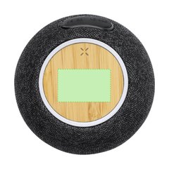 Altavoz multifunción con conexión Bluetooth®. Con carga inalámbrica de 15W para dispositivos con tecnología Qi. Carcasa fabricada en bambú y poliéster RPET, 5W de potencia, batería de 1200 mAh y conexión Bluetooth® 5.0. Incluye cable cargador Tipo C. Con distintivo RPET y presentado en caja individual de diseño kraft. Disponible manual de instrucciones en español e inglés. El material RPET se elabora a partir de plástico reciclado, para así fomentar la reutilización de residuos plásticos y ayudar a la sostenibilidad del planeta.