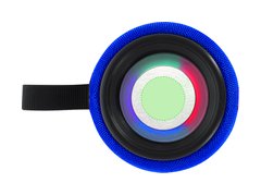 Altavoz estéreo Bluetooth 2x5W con luz multicolor. Fabricado en resistente tejido premium. Con luces LEDs multicolor con 5 posiciones de iluminación. Incluye asa de transporte. Conexión Bluetooth 5.3 con panel de control integrado en el lateral. Incluye función manos libres.