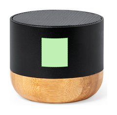 Altavoz eco fabricado en combinación de carcasa de Aluminio Reciclado y base de bambú. Con conexión Bluetooth® y 3W de potencia. Batería de litio de 300mAh y logotipo Aluminio Reciclado. Presentado en caja individual de diseño kraft, con manual de instrucciones disponible en español e inglés. El Aluminio Reciclado es un material con posibilidades de reciclaje casi infinitas, sin perder sus propiedades originales y consumiendo menos energía en este proceso. Certificación GRS (Global Recycled Standard / Estándar de Reciclaje Global), que garantiza el origen reciclado del material usado para fabricar el producto.