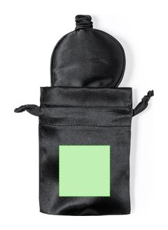 Antifaz de descanso en suave satén, con cinta elástica a juego. Presentado en bolsita individual de satén con cierre de cordón a juego.