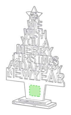 Original árbol de navidad con mensaje troquelado. Fabricado en madera, con amplia superficie de marcaje. Base desmontable y presentado en bolsa individual