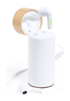 Auriculares intraurales de conexión Bluetooth® 5.0, con power bank en la base de carga. Con controles integrados y función manos libres, cada uno con una batería de 30 mAh de capacidad. Se alojan dentro de una base de carga a juego, con tapa y base de bambú, que incluye una batería interna de 4.500 mAh de capacidad y un cable de carga Tipo C integrado. Base con conexiones Tipo C de entrada/salida, conexión USB e indicador LED de estado de carga, además de dos almohadillas de goma antideslizantes. Presentados en atractiva caja de diseño kraft. Materiales como el bambú fomentan la utilización de materias primas naturales, reduciendo las emisiones contaminantes. Proviene de una planta de gran resistencia y versatilidad, con crecimiento y regeneración rápidos, siendo una excelente alternativa al uso de madera tradicional. Las capacidades mostradas en todas nuestras baterías auxiliares externas son reales, incorporando todas ellas baterías de grado A y no recicladas, con una vida útil de al menos 500 ciclos de carga y según normativa CE. Además, están fabricadas conforme a los estándares RoHS y en cumplimiento con los siguientes requisitos de seguridad: Sistema de protección contra sobrecarga del power bank. Sistema de protección contra descarga completa que proporciona una mayor durabilidad del power bank. Sistema de bloqueo para evitar cortocircuitos. Sistema de transferencia de carga constante, acorde con la capacidad del dispositivo de destino.