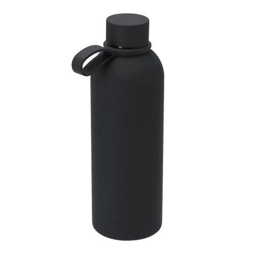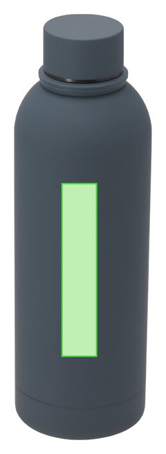 Bidón de 500 ml de capacidad, fabricado en Acero Inox con acabado engomado. Incluye asa de silicona a juego.