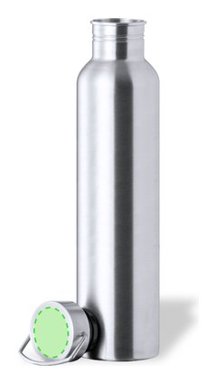 Bidón jumbo de 1,5 l de capacidad, fabricado en acero inox de acabado brillo. Con original tapón a rosca en acero inox, a juego y con asa integrada. Libre de BPA y presentado en caja individual de diseño kraft.