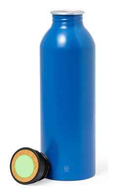 Bidón de 550 ml de capacidad. Fabricado en elegante y sostenible aluminio reciclado. De acabado satinado, incluye original tapón a rosca con detalle de bambú y libre de BPA. Con distintivo Aluminio Reciclado. Presentado en caja de diseño kraft y en bolsa individual reciclada. El aluminio reciclado es un material con posibilidades de reciclaje casi infinitas, sin perder sus propiedades originales y consumiendo menos energía en este proceso.