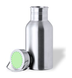Bidón de 500 ml de capacidad, fabricado en acero inox de acabado brillo. Con original tapón a rosca en acero inox, a juego y con asa integrada. Libre de BPA y presentado en caja individual de diseño kraft.