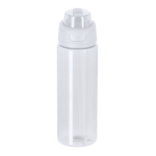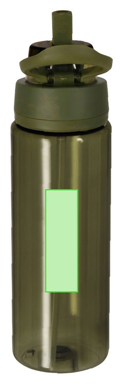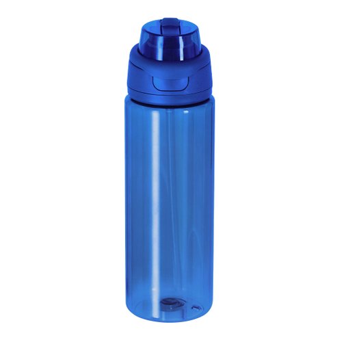 Bidón de 750ml de capacidad, fabricado en resistente RPET y en acabado translúcido. Con doble sistema de bebida, pajita y orificio de bebida. Tapa de cierre push y asa plegable. Libre de BPA.