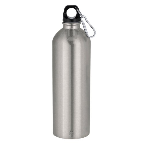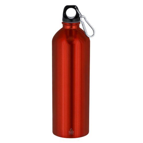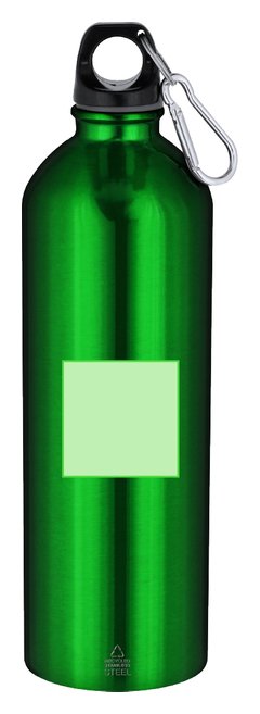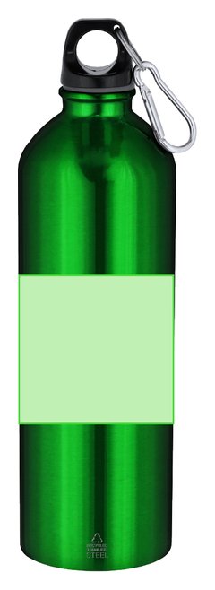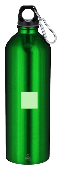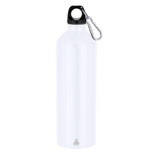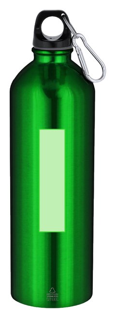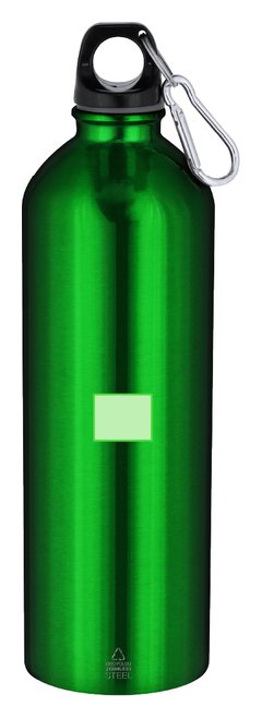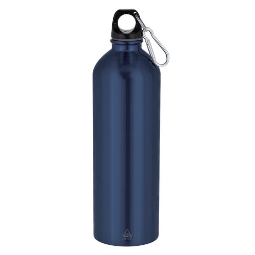 Bidón con 800 ml de capacidad. Fabricado en Acero Inoxidable Reciclado con acabado metalizado. Tapón negro de cierre a rosca para garantizar un sellado óptimo. Incluye mosquetón metálico que facilita su transporte. Con distintivo Acero Inoxidable Reciclado. El acero es uno de los materiales más demandados y que puede encontrarse casi en todas partes, desde productos de uso diario a grandes construcciones. Con innumerables propiedades, entre las que cabe destacar la durabilidad y su alto grado de reutilización, convirtiéndolo en una alternativa muy valorada en soluciones de sostenibilidad. Debidamente tratado, permite obtener nuevos recursos de infinita utilización.