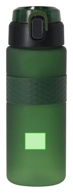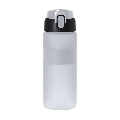 Bidón de 730ml de capacidad, fabricado en resistente RPET y en acabado translúcido mate con accesorio de silicona. Con tapa de sistema push, sistema de boquilla en pajita, cierre de seguridad y cómoda asa de transporte. Libre de BPA.