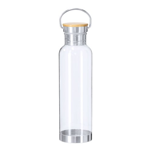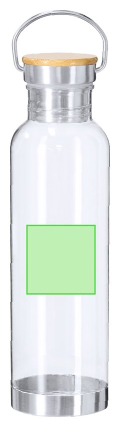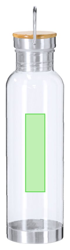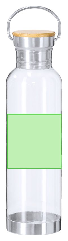 Bidón fabricado en RPET con capacidad de 800 ml. Cuerpo en RPET transparente. Tapón a rosca equipado con asa de trasporte en acero inoxidable con tapa en bambú y base en acero inoxidable. El material RPET se elabora a partir de plástico reciclado, para así fomentar la reutilización de residuos plásticos y ayudar a la sostenibilidad del planeta. Materiales como el Bambú fomentan la utilización de materias primas naturales reduciendo las emisiones contaminantes. Además, el bambú proviene de una planta de gran resistencia y versatilidad, con crecimiento y regeneración rápida, siendo una excelente alternativa al uso de madera tradicional.