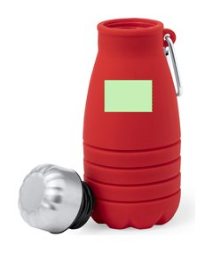 Bidón plegable de 550 ml de capacidad. Fabricado en silicona de alta calidad con tapón de acero inoxidable. Con cuerpo flexible de acabado mate, este bidón puede ser plegado para un cómodo y sencillo almacenamiento. Incluye mosquetón para fácil transporte. Libre de BPA. Disponible en variada gama de colores. Presentado en bolsa individual reciclada. Medidas plegado: Ø7,1 cm x 16,9 cm de alto. Medidas desplegado Ø7,1 cm hasta 24,8 cm de alto.