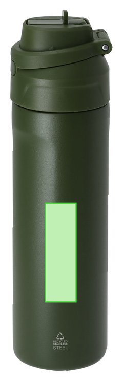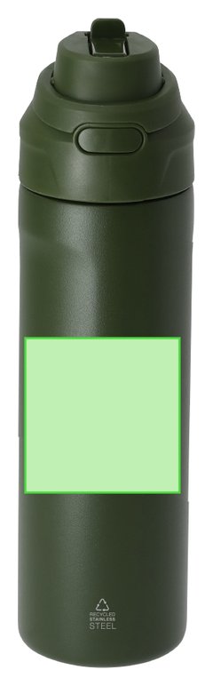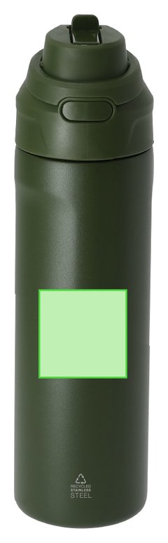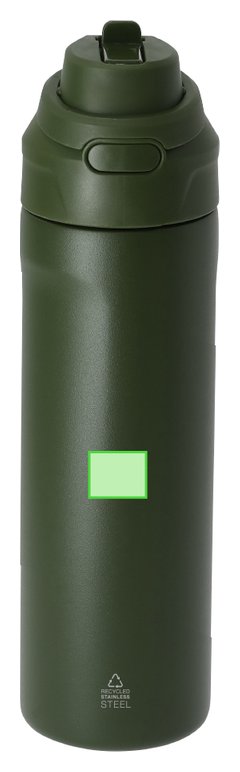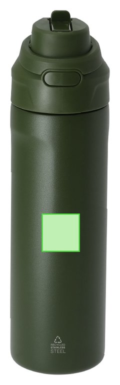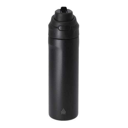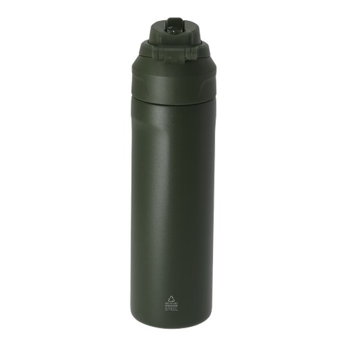 Bidón térmico con 700 ml de capacidad. Fabricado en Acero Inoxidable Reciclado. Cuenta con doble pared y dos sistemas de bebida: orificio con cierre hermético con apertura en push y pajita integrada, adaptándose a las preferencias de uso. Con tapa de sistema de sellado hermético. Incluye práctica asa de transporte integrada, ideal para llevarlo fácilmente en cualquier situación. Libre de BPA. Con distintivo Acero Inoxidable Reciclado.