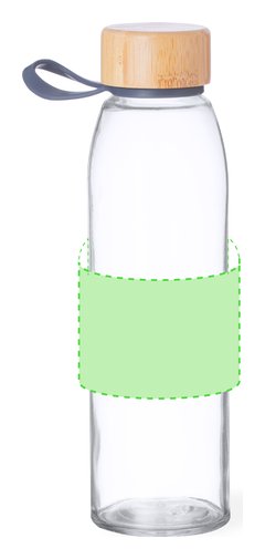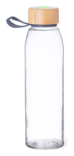 Bidón de cristal de 500 ml. Tapón de rosca en bambú con práctica asa de silicona. Presentado en caja de diseño kraft.