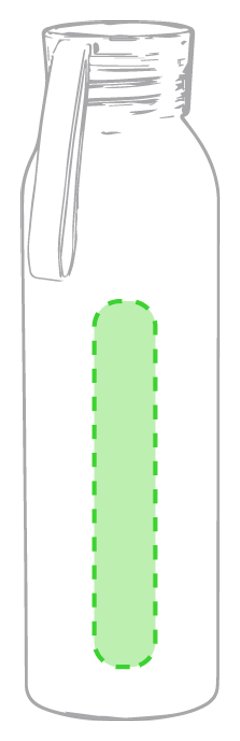 Bidon de aluminio de 650 ml de capacidad. Cuerpo en color plateado, con tapón de seguridad a rosca en variada gama de colores transparentes. Cinta de transporte en material TPR a juego.