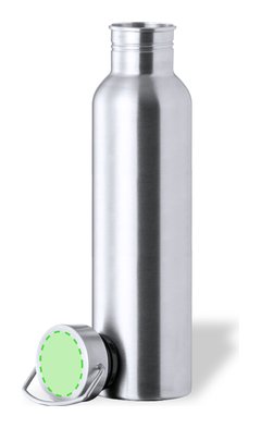 Bidón de 1 l de capacidad, fabricado en acero inox de acabado brillo. Con original tapón a rosca en acero inox, a juego y con asa integrada. Libre de BPA y presentado en caja individual de diseño kraft.