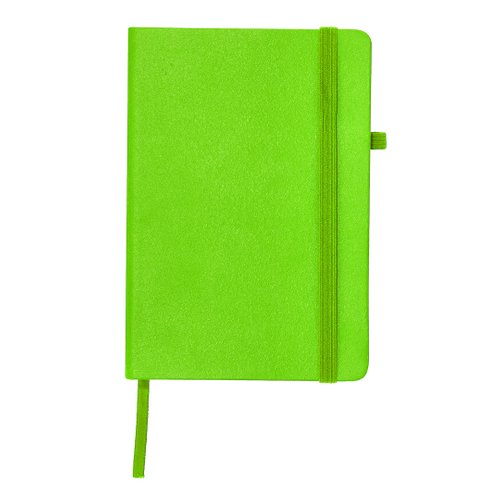 Bloc de notas con cubiertas rígidas y elaborado en PU Reciclado. Con práctico, soporte para bolígrafo, marcapáginas y cinta elástica de cierre a juego. Incluye 100 hojas color crema con disposición a rayas. Con distintivo de PU Reciclado.La PU Reciclado destaca por su resistencia y elasticidad. Este material reciclado y reciclable es una opción sostenible que rescata las fibras desechadas en los procesos de fabricación, minimizando así el desperdicio de material y contribuyendo a su vez a reducir el impacto ambiental, manteniendo a la vez sus propiedades originales.