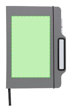 Bloc de notas soporte fabricado en suave PU. Con tapas rígidas,cuenta con soporte para smartphone en portada. Incluye bolígrafo de escritura eterna en color blanco. Con 80 hojas interiores lisas de color crema, elástico de cierre negro y marcapáginas a juego.