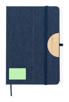 Bloc de notas soporte con tapas rígidas fabricado en RPET 300D y bambú. Versátil soporte integrado en la portada para smartphone y tablet, confeccionado en bambú. Cuenta con elástico de cierre y soporte para bolígrafo a juego. Contiene 80 hojas ineriores lisas y está disponible en una amplia gama de colores. Con logotipo RPET en contraportada y presentado en bolsa individual de papel reciclada. El material RPET se elabora a partir de plástico reciclado, para así fomentar la reutilización de residuos plásticos y ayudar a la sostenibilidad del planeta.