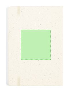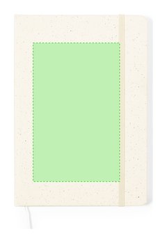 Bloc de notas A5 con tapas duras en resistente cartón reciclado. De 100 hojas blancas lisas y banda elástica para su cierre. Presentado en bolsa individual reciclada.