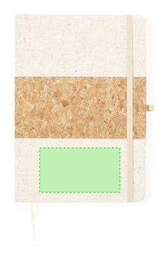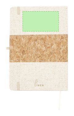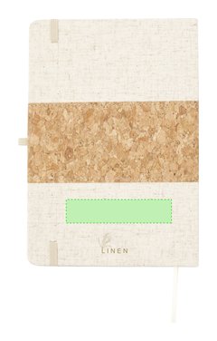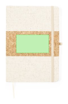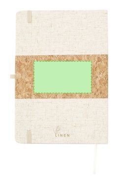 Bloc de notas de tapas exteriores confeccionadas en corcho y lino. De tapas rígidas, con soporte para bolígrafo, marcapáginas y 80 hojas lisas color natural. Presentado en bolsa individual. Elaborado con elementos vegetales para así fomentar la utilización de materias primas naturales y reducir las emisiones contaminantes.