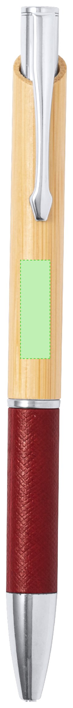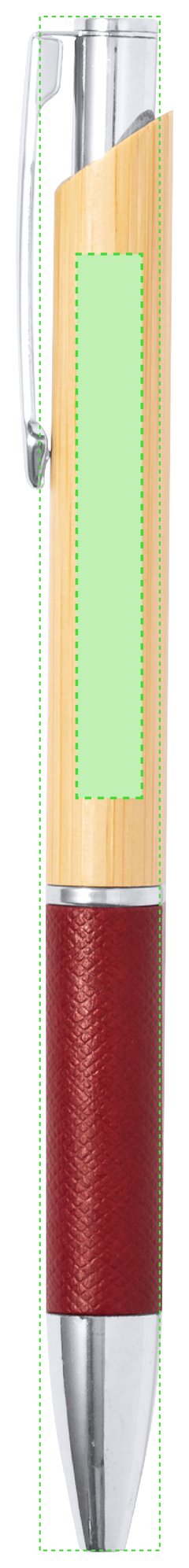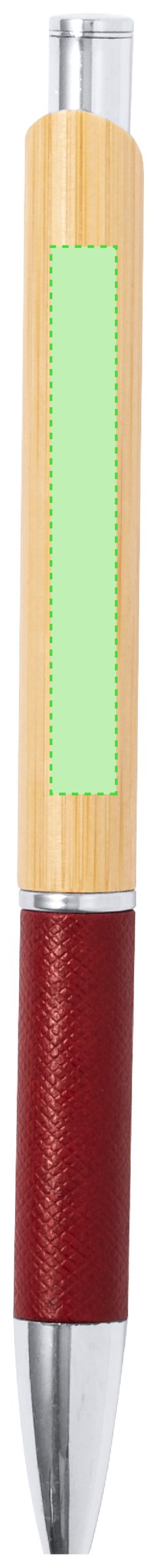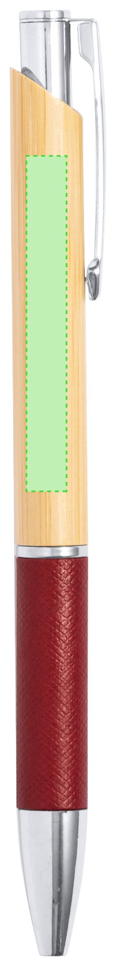 Bolígrafo con cuerpo en bambú y papel reciclado. Caña fabricada en suave bambú con empuñadura hecha en cartón reciclado con textura y en variados colores. Clip metálico y accesorios en cromado. De mecanismo pulsador, de cartucho jumbo y con tinta azul. Elaborado con elementos vegetales para así fomentar la utilización de materias primas naturales y reducir las emisiones contaminantes.
