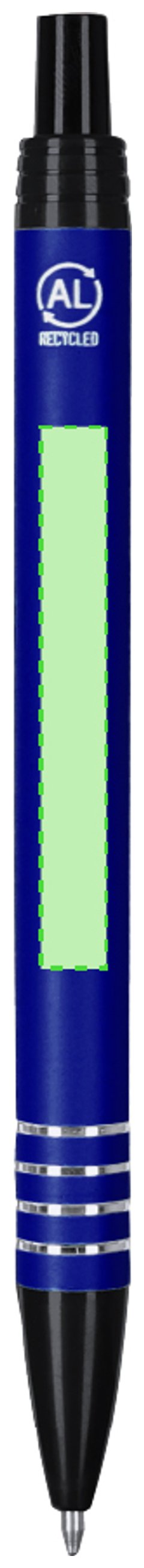 Bolígrafo fabricado en Aluminio Reciclado. De mecanismo pulsador, con accesorios en color negro y anillas en plateado. De cartucho jumbo y en tinta azul. Distintivo de Aluminio Reciclado en parte superior.El aluminio reciclado es un material con posibilidades de reciclaje casi infinitas, sin perder sus propiedades originales y consumiendo menos energía en este proceso.Certificación GRS (Global Recycled Standard / Estándar de Reciclaje Global), que garantiza el origen reciclado del material usado para fabricar el producto.