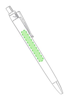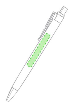 Bolígrafo de mecanismo pulsador de atrevido diseño bicolor con accesorios en gris plateado y cuerpo de suave acabado en vivos colores. Con original clip a juego. Tinta azul.