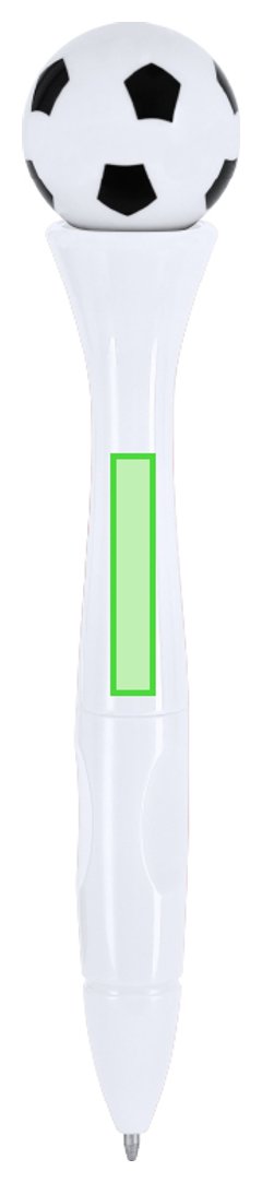 Bolígrafo antiestrés de mecanismo giratorio y diseño de balón de futbol. Cuerpo en acabado sólido brillante. Con tinta azul.