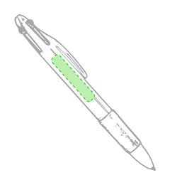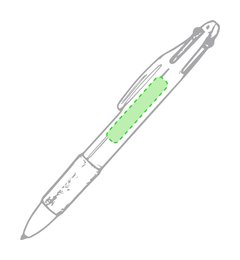 Bolígrafo 4 en 1 de mecanismo pulsador retráctil, de clásico diseño y cuerpo de suave acabado sólido en color blanco. Suave empuñadura a juego en vivos colores. De 4 cartuchos, en tintas azul, negra, roja y verde.