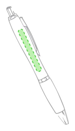 Bolígrafo de mecanismo pulsador de atrevido diseño bicolor con accesorios en color plateado y cuerpo de suave acabado en divertidos colores sólidos. Con original clip metálico troquelado a juego y cómoda empuñadura. Tinta azul.