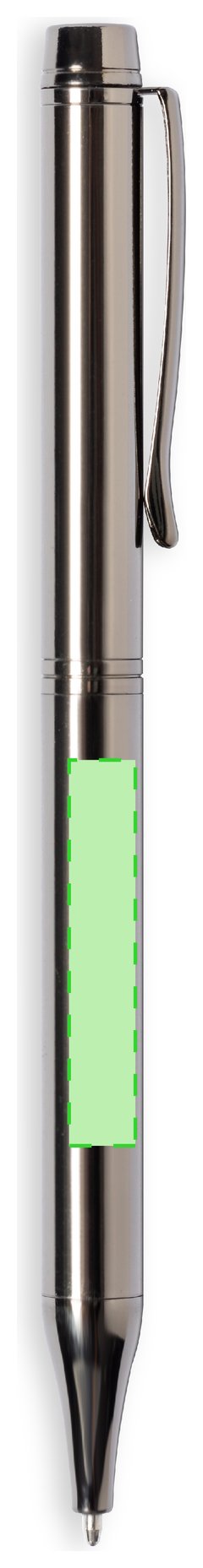 Bolígrafo de Antonio Miró fabricado en metal de acabado brillante, con logotipo de la marca en cuerpo y disponible en variada gama de colores. Con mecanismo giratorio y en tinta azul. Presentado en elegante y resistente caja individual negra con logotipo Antonio Miró y funda a juego.
