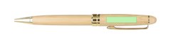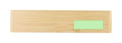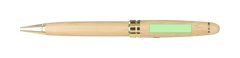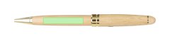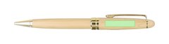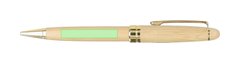 Elegante bolígrafo elaborado en una combinación de bambú natural y elementos metálicos con acabado dorado, con mecanismo giratorio y tinta azul. Presentado en distinguido estuche de bambú.Materiales como el Bambú fomentan la utilización de materias primas naturales reduciendo las emisiones contaminantes. Además, el bambú proviene de una planta de gran resistencia y versatilidad, con crecimiento y regeneración rápida, siendo una excelente alternativa al uso de madera tradicional.