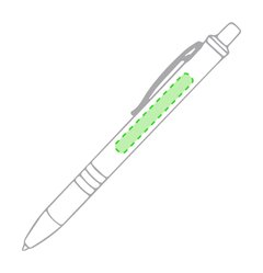 Bolígrafo de mecanismo pulsador de elegante diseño bicolor con accesorios en color plateado brillante y cuerpo de suave acabado en color blanco brillante con la bandera nacional. Con clip metálico, de cartucho jumbo y tinta azul.