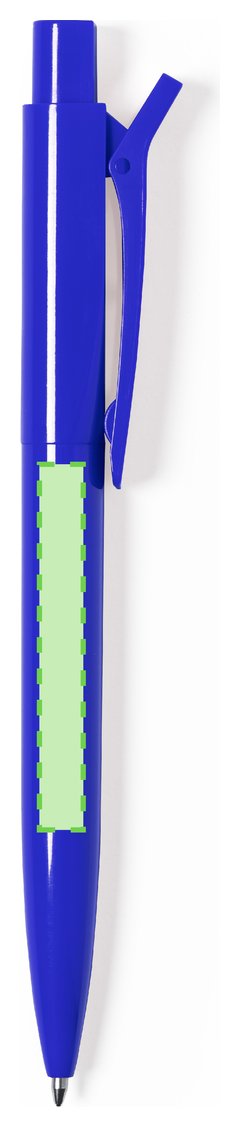 Original bolígrafo con clip pinza y fabricado en resistente ABS de acabado brillante. Disponible en variada gama de colores, con cartucho jumbo y tinta azul.