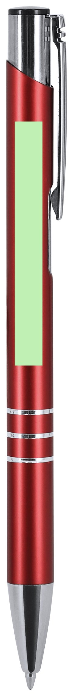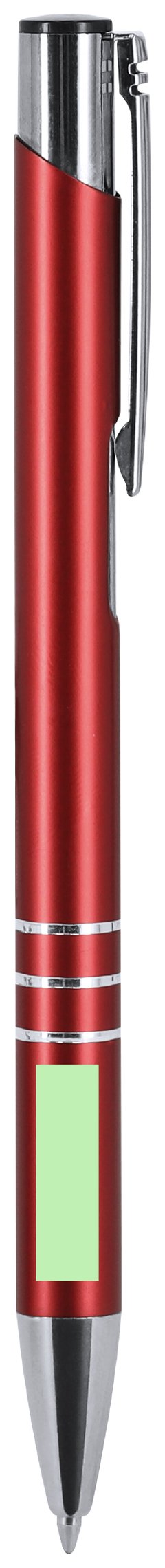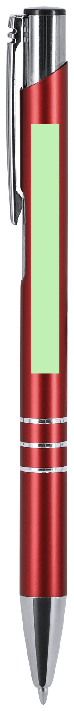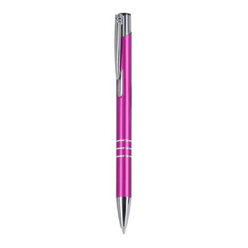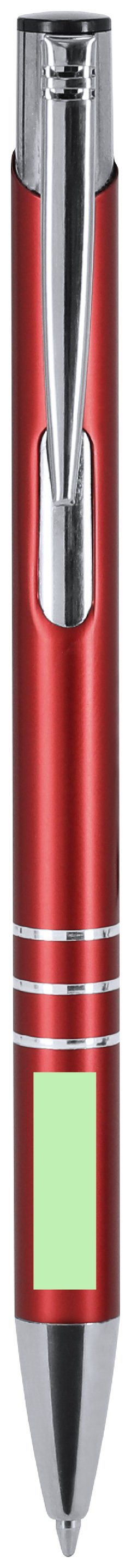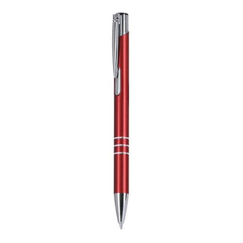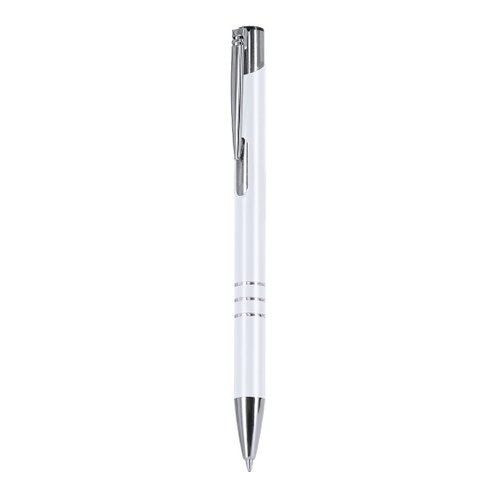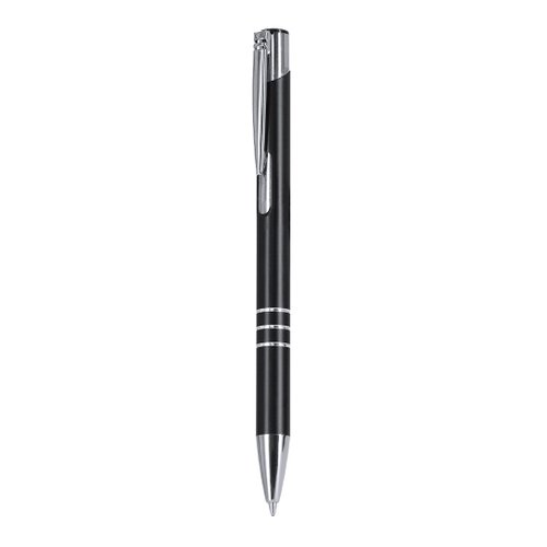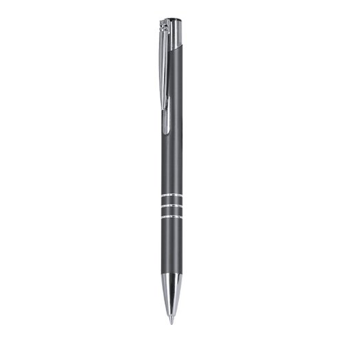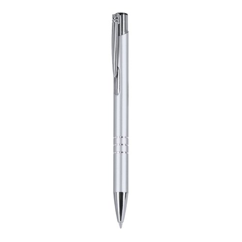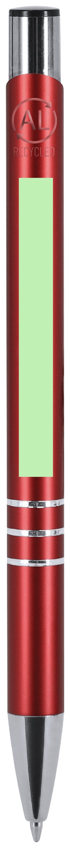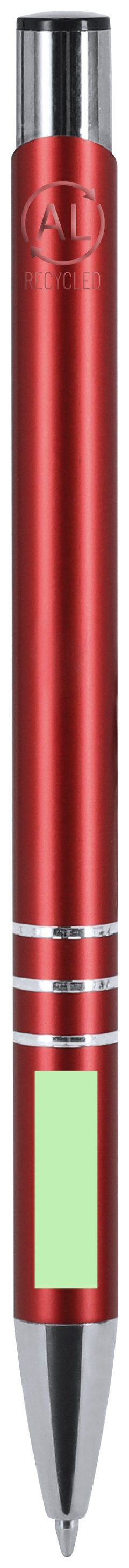 Bolígrafo de mecanismo pulsador. Acabado en aluminio reciclado brillante, de cartucho jumbo y tinta azul.Con distintivo logo de Aluminio Reciclado.
