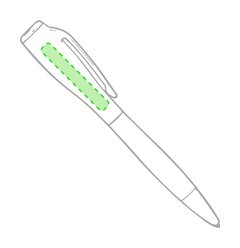 Bolígrafo con linterna led integrada. De mecanismo pulsador lateral y en diseño minimalista de original combinación de colores gris y blanco. En tinta azul y con pilas de botón incluidas.