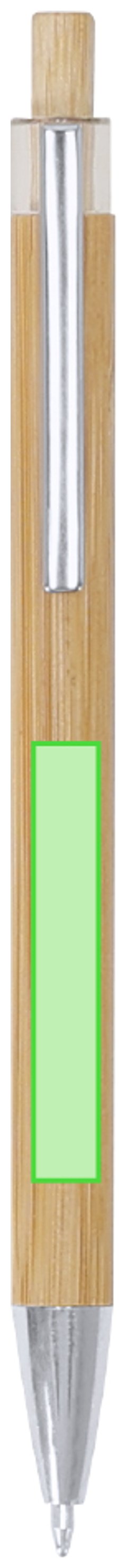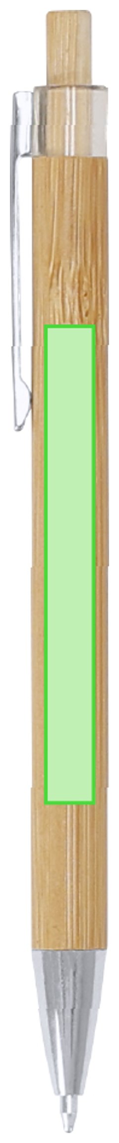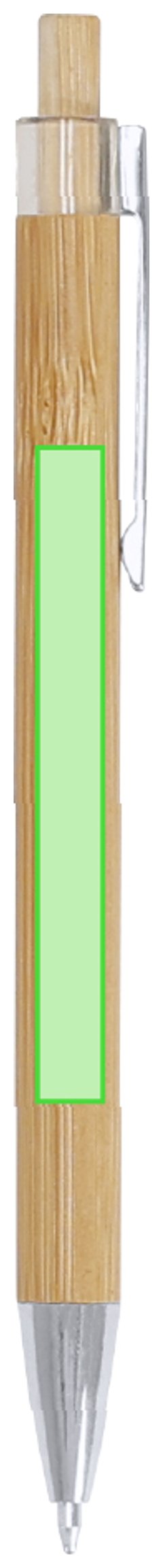 Bolígrafo fabricado en bambú. Diseñado con pulsador en bambú juego con el cuerpo, y clip y punta metálica. Mecanismo pulsador.