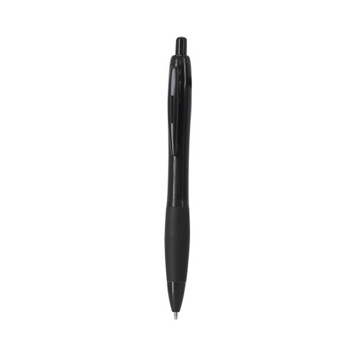 Bolígrafo de mecanismo pulsador en resistente RABS. Clip, pulsador y punta en negro. En tinta azul. Incluye distintivo RABS.