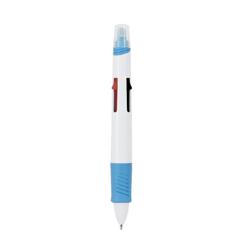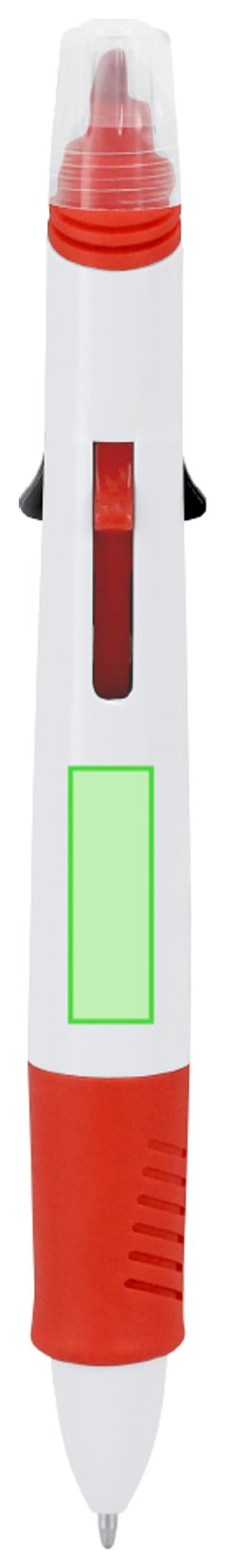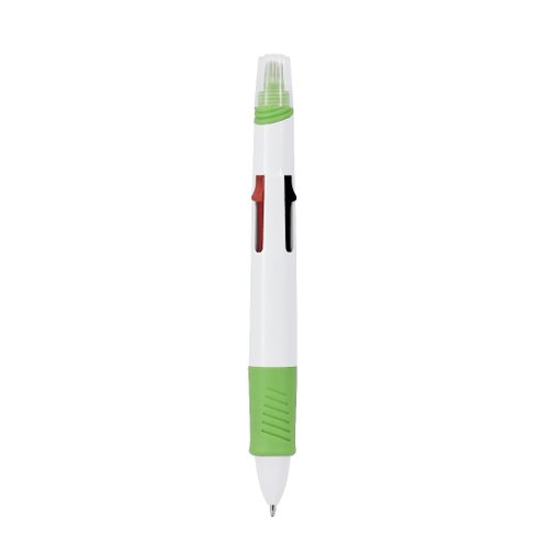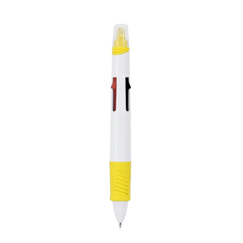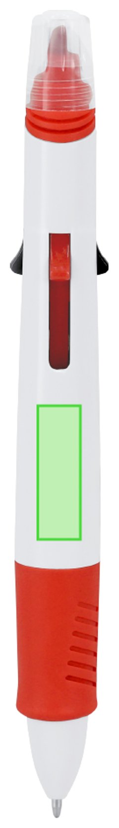 Bolígrafo multicolor con marcador incluido fabricado en ABS. Este instrumento de escritura ofrece una variada paleta de colores en un solo bolígrafo, con una selección de 4 colores diferentes adaptándose a cualquier tarea. Capucha del subrayador translúcida.