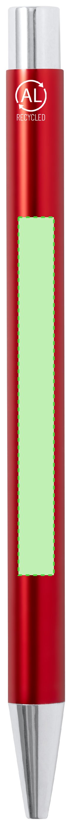 Elegante bolígrafo en Aluminio Reciclado con mecanismo pulsador. Cuerpo en resistente Aluminio Reciclado de acabado brillante, en variada gama de colores. Clip metálico con pulsador retráctil. En tinta azul y con carga jumbo. Presentado en bolsa individual reciclada. El Aluminio Reciclado es un material con posibilidades de reciclaje casi infinitas, sin perder sus propiedades originales y consumiendo menos energía en este proceso. Certificación GRS (Global Recycled Standard / Estándar de Reciclaje Global), que garantiza el origen reciclado del material usado para fabricar el producto.