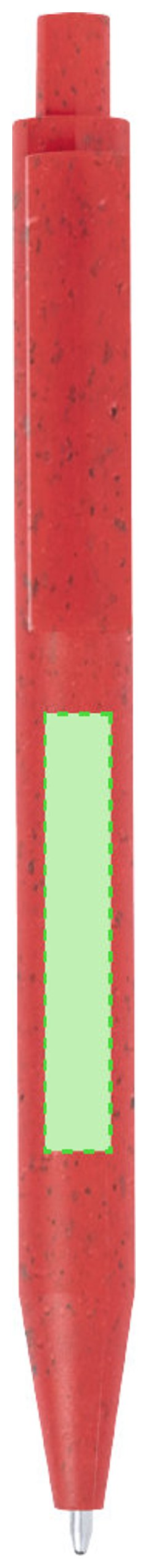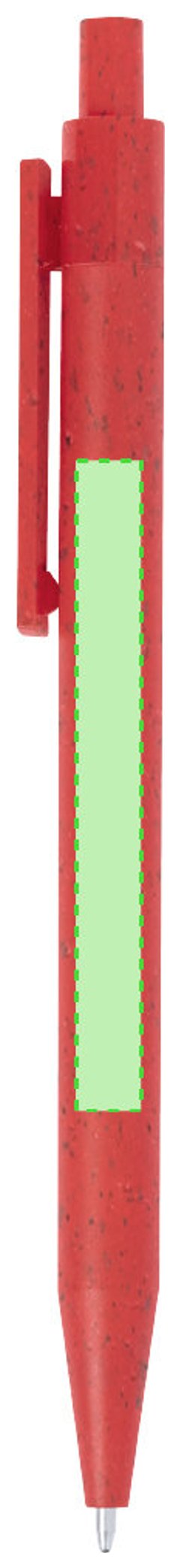 Práctico bolígrafo fabricado en caña de trigo y ABS. De mecanismo pulsador, en tinta azul y con logotipo Wheat Straw en la parte superior del bolígrafo. Disponible en variada gama de colores. La caña de trigo fomenta la utilización de materias primas naturales, reduciendo así las emisiones contaminantes.