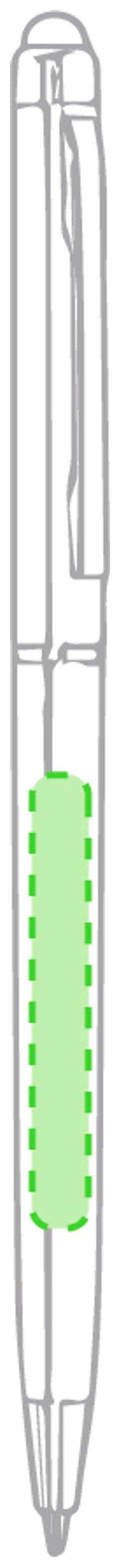 Bolígrafo puntero de mecanismo giratorio con cuerpo en de suave acabado metalizado. Con clip cromado. En variada gama de llamativos colores. Tinta azul.