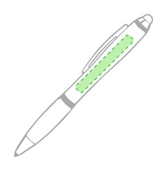 Bolígrafo puntero de mecanismo pulsador de atrevido diseño bicolor con accesorios en negro y cuerpo de suave acabado en divertidos colores flúor. Con original clip metálico troquelado a juego y cómoda empuñadura. Tinta azul.